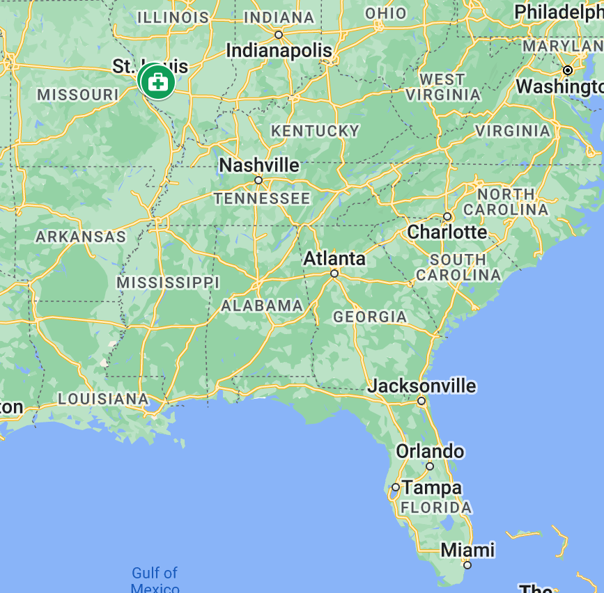 Clinics that are a 2-3 hour (direct) flight from Tampa & can provide additional funding assistance and/or practical support. These clinics are labelled with a green icon in the map above.